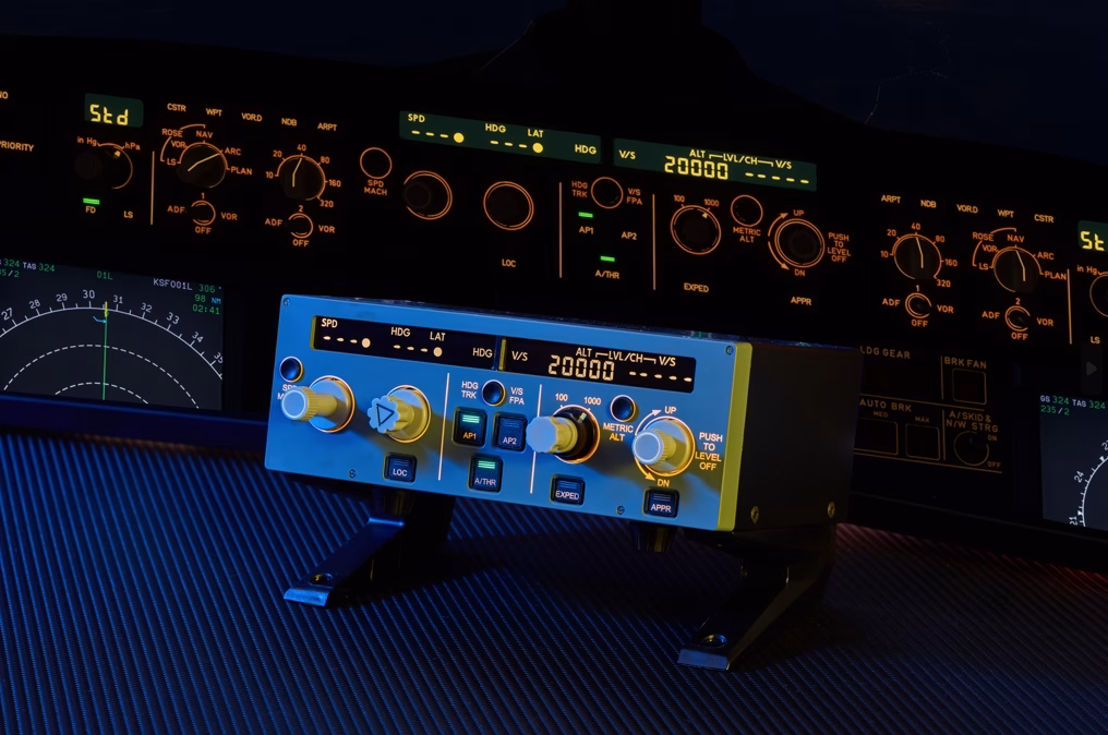 Les boutons de commande et les leviers push-pull, semblables à ceux d’un avion, offrent le même retour tactile qu’un véritable A320. Encodeurs personnalisés de qualité commerciale avec un son clair et jusqu’à 30 crans pour une sensation de douceur et de qualité supérieure. Leviers push-pull avec une course continue de 2,2 mm. Les commutateurs de commande du pilote automatique (AP1, AP2, A/THR) offrent une course de 2,5 mm, produisant un « clic » réaliste pour un retour précis. Des boutons fonctionnels supplémentaires utilisent des commutateurs haute performance Japan Alps pour une expérience de vol électrique Airbus authentique.